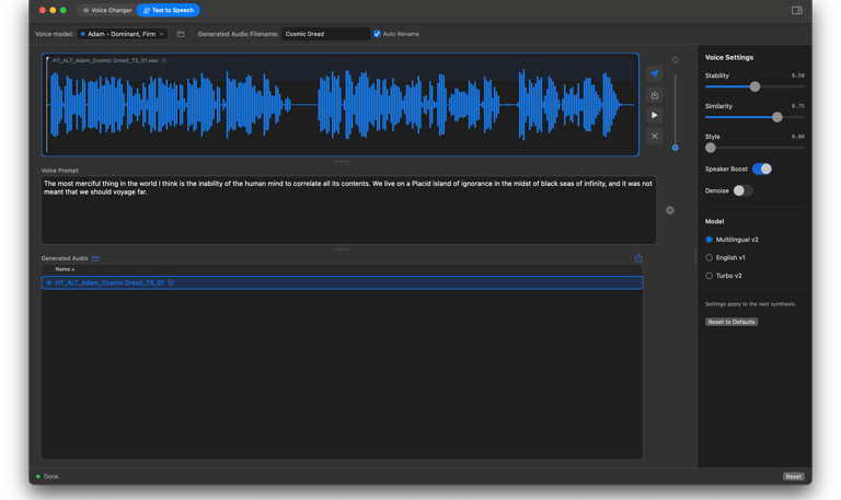 A local workflow solution that builds voice models and generated audio using an Eleven Labs API. Voice modeling and iteration made easy.