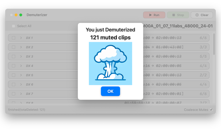 Prep for M&E mixes or tidy up those big sessions by deleting your muted clips individually or en masse.